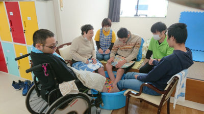 とはいえ、経験のないスタッフに身体をあずける仲間に不安を与えてはいけません。そこで大切にしているのが、言葉がけです。ここでは仲間たちのケアの際は「上体を起こすよ」「移動するよ」などと全てを声にするのです。仲間にとっては安心感につながり、スタッフ同士の連携にも役に立っています。もちろん気が利かないことも多々ありますが、仲間や親御さんたちには、要求や要望は声に出してほしいとお願いしています。